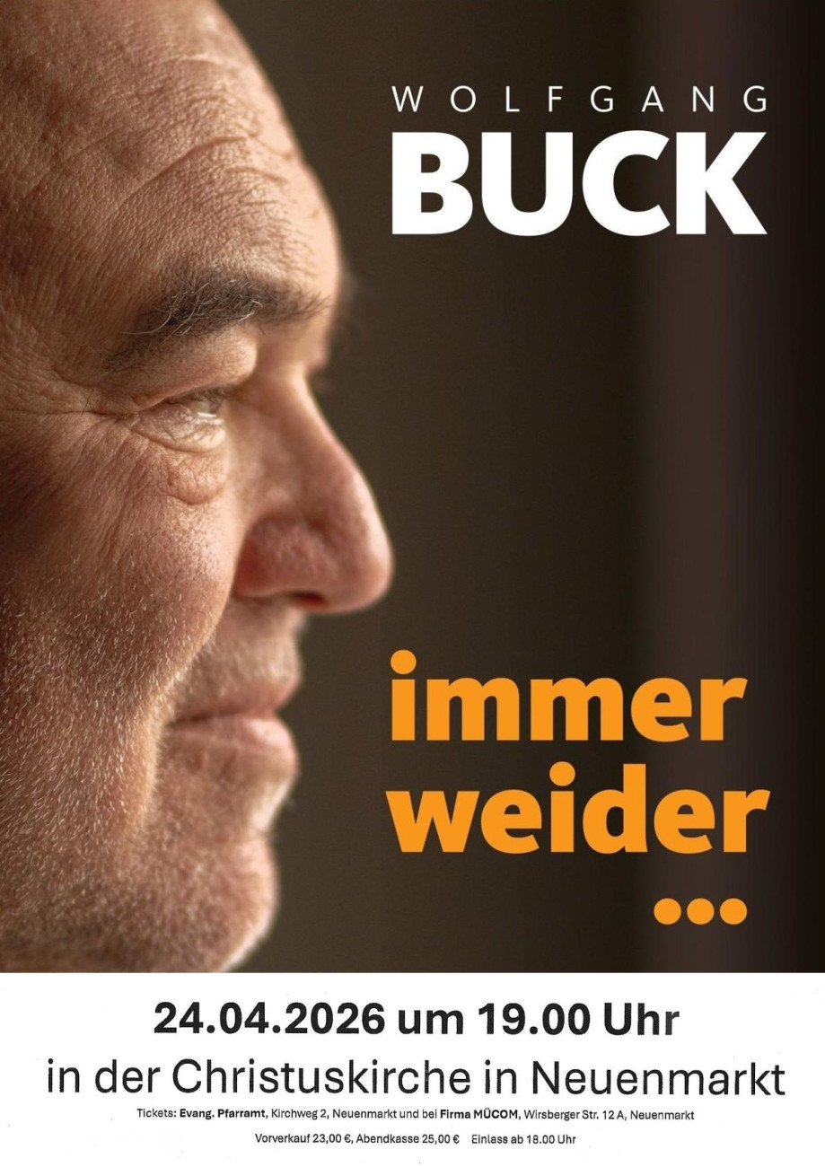 Wolfgang Buck, der bekannte fränkische Liedermacher kommt zu unserem Jubiläum. Kommen Sie doch auch! Für Senioren und Auszubildende gibt es Ermäßigung.